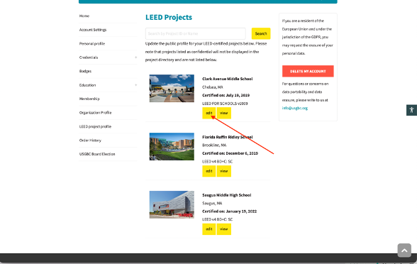 Project teams can now update their profiles through their accounts on usgbc.org via “LEED project profile.”